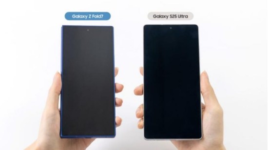 (从左至右)Galaxy S25 Ultra与Galaxy Z Fold7重量对比在折叠态下,三星Galaxy Z Fold7再现直板手机的直观与便捷,展开后则呈现Galaxy智能手机中最大尺寸的主屏幕,带来极致沉浸的游戏、